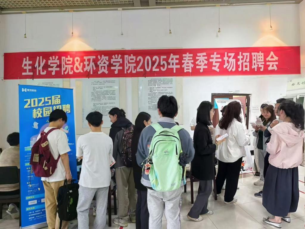 与生化学院在创业广场联合举办2025年春季专场招聘会,吸引27家环保科技、新能源等领域优质企业参与,提供实习及就业岗位130余个,需求超700人,覆盖环境工程、轻工工程、生物制药等方向,精准对接环资、生化、智能制造与能源工程、经济、管理等学院学生就业需求。