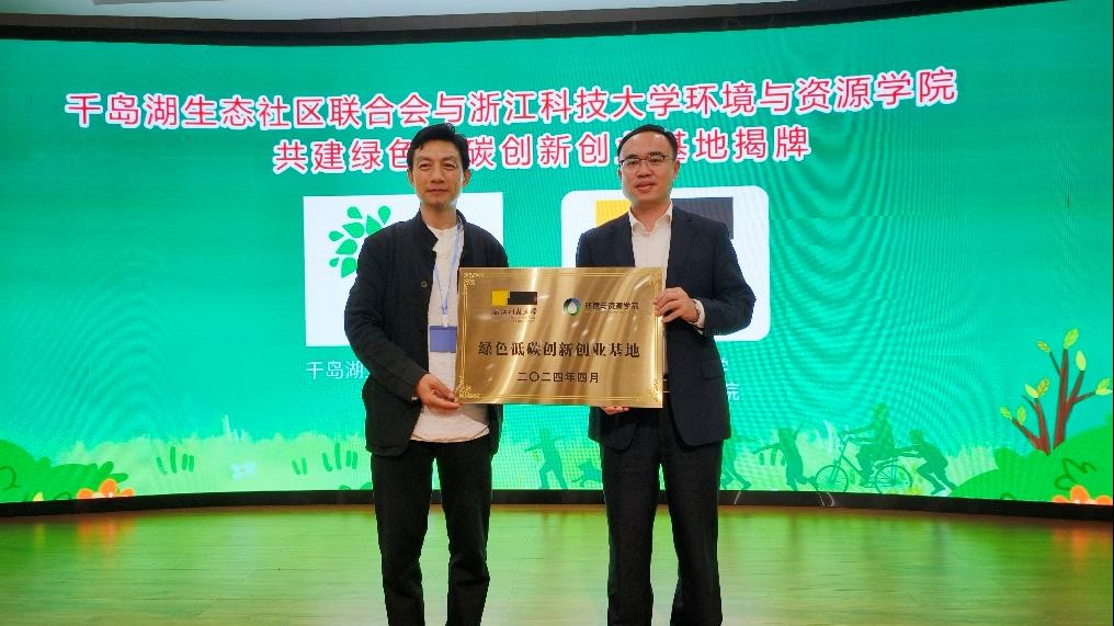 党委书记李俊与千岛湖生态社区联合会秘书长吴道元共同揭牌成立绿色低碳创新创业基地,双方表示将充分发挥各自优势,合作推动生态社区建设与淳安特别生态功能区绿色发展迈入崭新阶段,为全球生态文明社区建设贡献了智慧和方案。在交流会上,李俊作了题为《绿色低碳创新创业浙科探索与实践》的发言,得到与会人员关注和认可。
