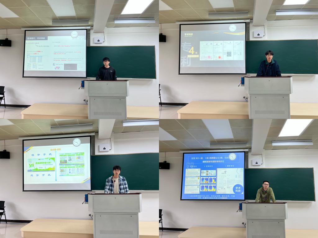 四位优秀研究生代表分别从自身实际出发,从不同角度将自己在适应读研、科研创新、学科竞赛、成果发表、社会服务、考博就业等方面的经验体会分享给参会学生。分享结束后,现场同学就学业、科研、升学、就业等方面存在的困惑提出问题,与四位分享者进行交流。