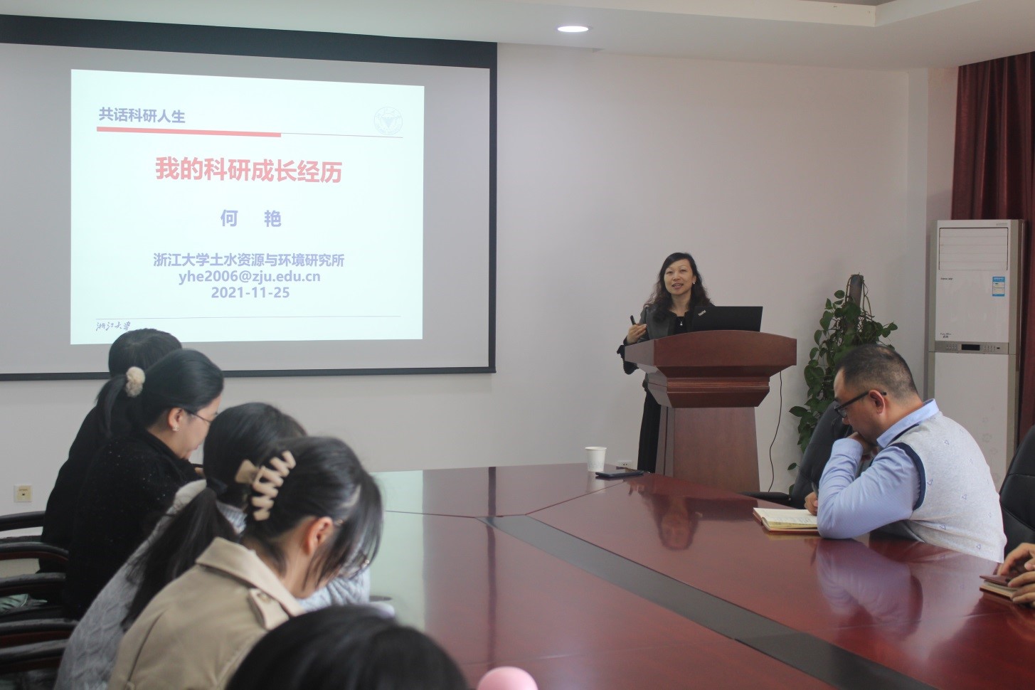 、浙江省废弃生物质循环利用与生态处理技术重点实验室并作题为“我的科研成长经历”的学术报告,单胜道副校长、刘赫扬院长、胡志军副院长以及学院专业教师等三十余人参加了报告会。