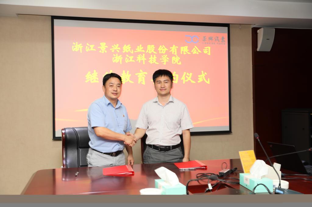 与浙江景兴纸业股份有限公司双方表示将通过党建引领,结合实际发挥各自优势,推动双方在学科科研、人才培养、成果转化和继续教育等方面的深度合作,打造校企合作的“新样本”。双方代表还分别签署了党建共同体、产业学院实践创新基地和师资培训基地、继续教育等多项合作协议。