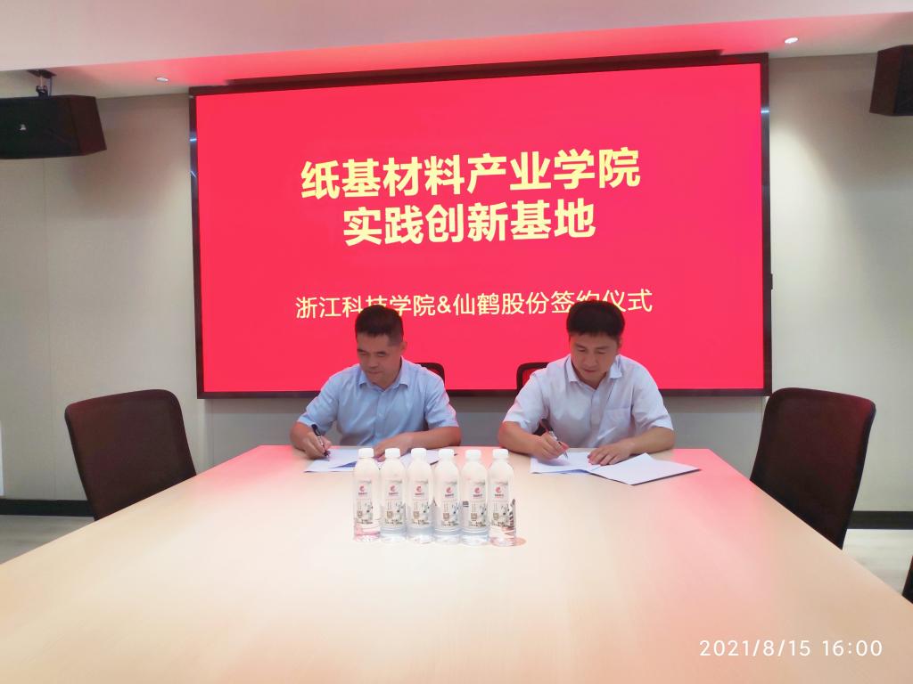 8月15日,纸基材料产业学院签约暨实践创新基地揭牌仪式在仙鹤股份高性能纸及纤维复合材料——浙江省产业创新服务综合体举行。仙鹤股份总经理助理张诚,总经办主任骆华英,夏王纸业副总经理骆志荣,总经办主任傅群英,浙江科技学院组织部副部长张学金,博彩平台网址大全