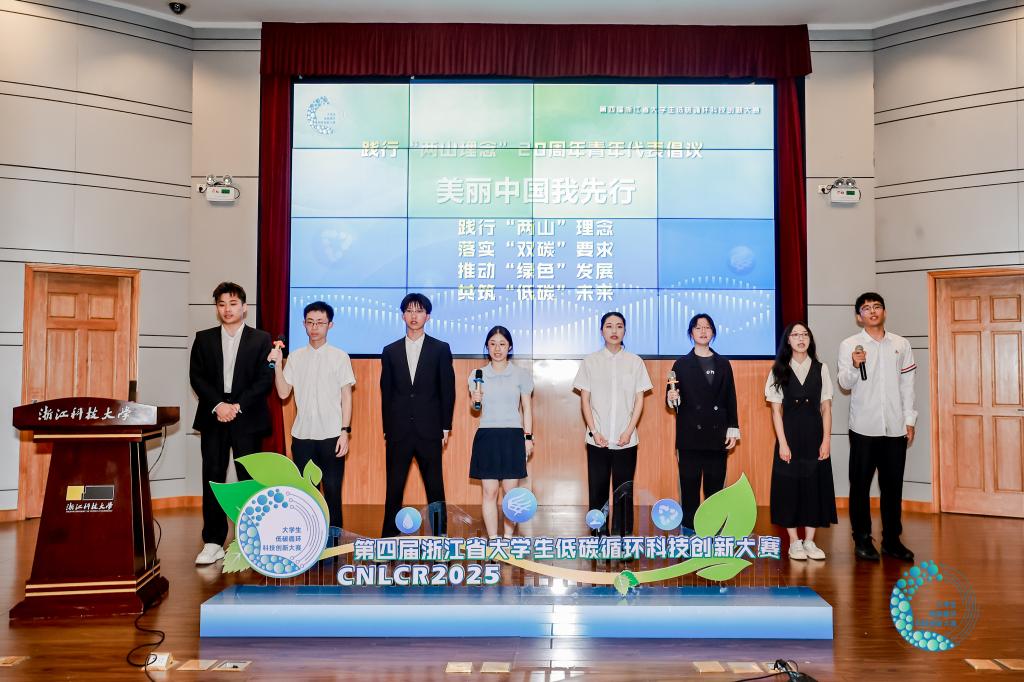 等8所学校的青年学生代表带着自己的绿色实践发出倡议,践行“绿水青山就是金山银山”理念,用实际行动扛起绿色低碳责任担当。