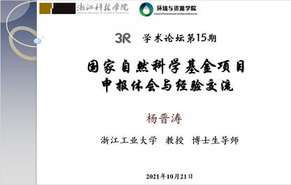 20211021日下午2点,博彩平台网址大全 召开2022国基申报动员会暨第15 “3R”学术论坛,邀请了学院获得2021年度国家自然科学基金项目资助的三位老师鲁祎、常紫阳和李勇超进行经验分享与交流,特邀浙江工业大学博士生导师杨晋涛教授做题为国家自然科学基金申请体会交流的主题报告,胡志军副院长和二十余位教师参加了报告会。