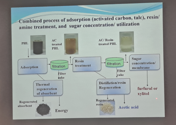 报告中倪院士首先简要介绍自己的科研方向对溶解浆的含义、性能要求、制备工艺和实际用途做了讲解,较为详细地阐述了纤维活化在溶解浆制备过程中的重要性以及常用的活化方法和作用机制,随后以生动的方式重点讲述了预水解在改善溶解浆性能方面的效率、预水解液组分回收的意义以及木片预水解液的化学组成及其分离方式,强调生物质精炼在绿色发展过程中发挥的实际作用。