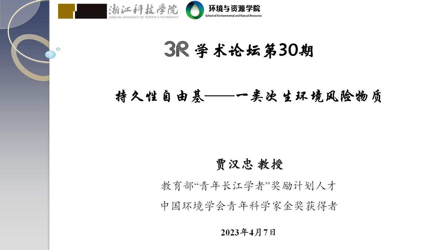 在学术报告中,贾汉忠教授首先介绍了其研究团队近年来在环境持久性自由基的形成过程、环境行为及毒理效应方面开展的研究工作以及取得的进展、成果和经验,随后详细讲述了颗粒物上EPFRs的形成与其反应活性、有机污染物土壤中EPFRs的形成与毒性作用、天然/人为聚合物中EPFRs的形成与活性,并和参会师生进行了热烈的互动交流与讨论,对环境中持久性自由基的作用机制及环境效应等相关问题进行了详细解答和交流讨论。
